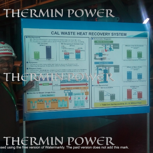 We at "Thermin Power" execute Waste Heat Recovery Project as a Turn Key Project starting from Scratch to Energy Audits, to Primary Design/Costing and offer preparation, Offering the best alternative, to Getting valuable Purchase Order from clients, to Post Order Design and Documentation, to Manufacturing in accordance with corresponding standard, to transit, to Site Erection including cabling and insulation, to Site Commissioning, to Performance Validation and to Successful handing over. Our Systems boost climate Pollution Control by reducing Carbon Footprint which is a Global Task and parallel such systems Boost our Client's Profit Margin which indirectly Boosts our Client's Business Turnover. We successfully converted waste heat from furnace gases/compressors/Engine Exhausts/Waste steam/Waste Hot Waster/Incinerator Exhausts/Boiler Exhausts/etc. into usable heat which tremendously increases client profitability and reduces Global Warming generating Carbon Credit.